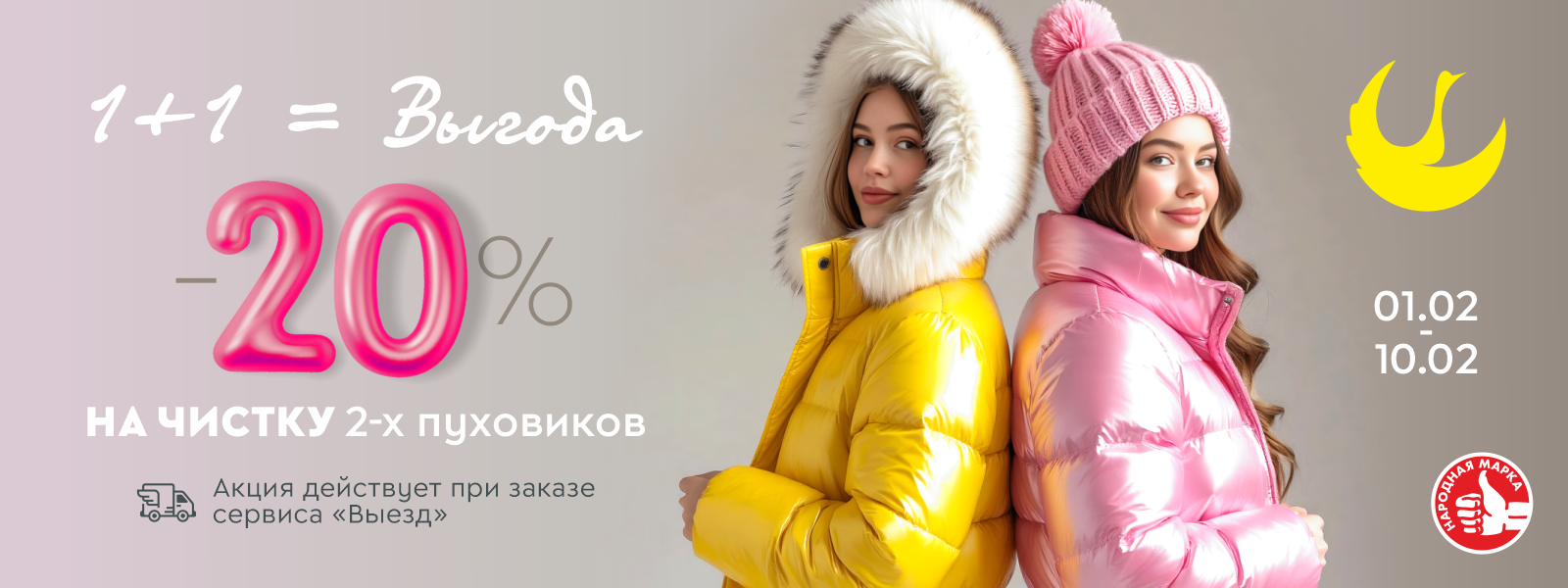 Главное условие Акции: скидка 20% на чистку 2-х и более текстильных курток и пальто (утепленные, зимние, на пуху или на синтепоне).
