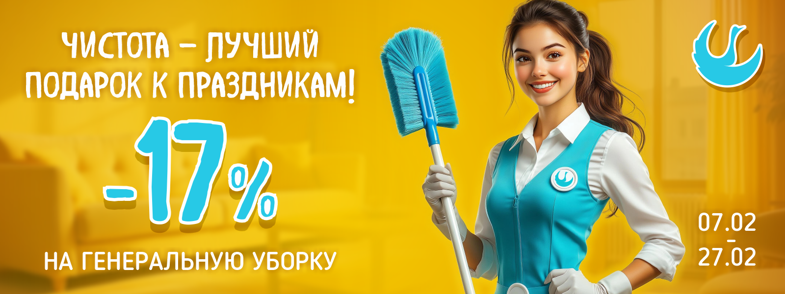 Условия акции: Скидка 17% при заказе генеральной уборки, послестроительной и сильнозагрязнённых помещений - квартир/домов/офисов.
