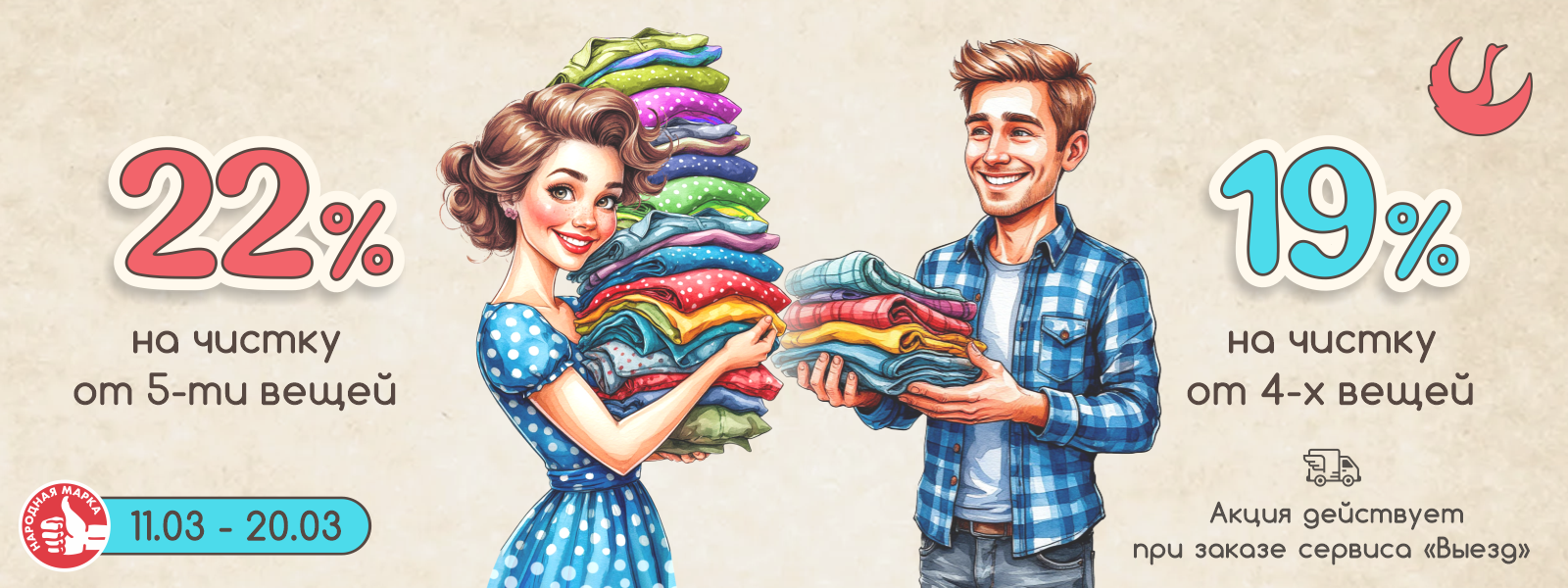 - скидка 22% на чистку от 5-ти вещей.